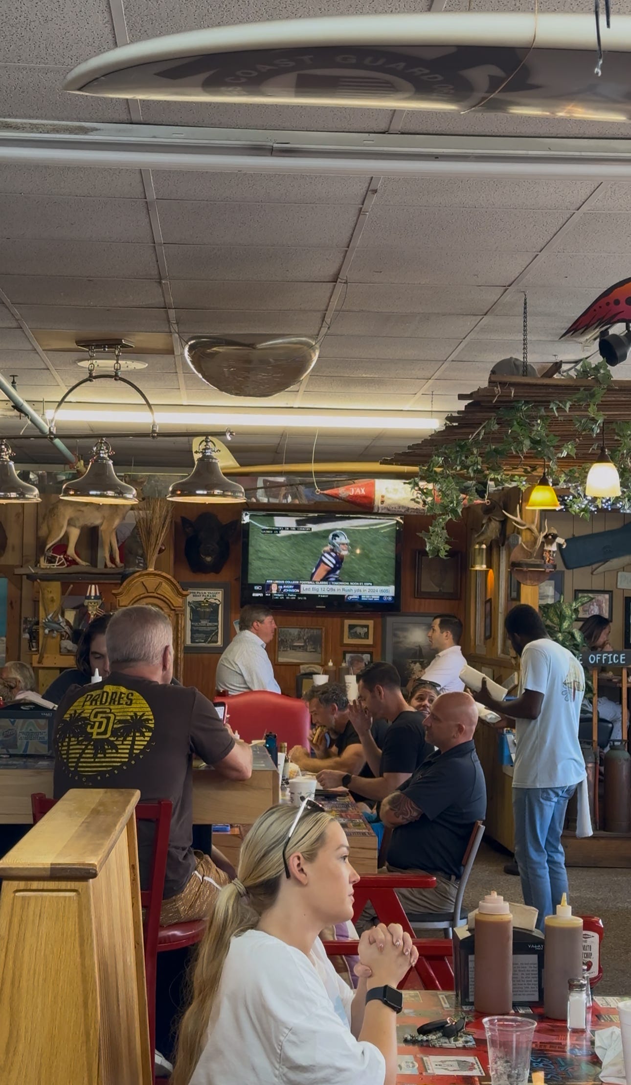 They support local small businesses with ad space all over the tables. They have framed "Customer of the Month" pictures dating back to the early 2000s. They employ high school kids from local high schools and have a TV solely dedicated to a livestream of the Jax Beach pier.